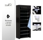 Construida con tela resistente al agua, tubos de acero y conectores de plástico reforzado, esta estantería está diseñada para garantizar una durabilidad excepcional. Ideal para organizar ropa, juguetes, zapatos y más, manteniendo todo en su lugar de manera ordenada.