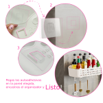 Fabricada con material PP duradero, es resistente y reutilizable, lo que asegura su uso a largo plazo. Además, su instalación sin clavos la hace fácil de montar sin dañar las superficies, mientras que su diseño elevado y ensanchado mantiene los artículos seguros en su lugar.