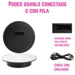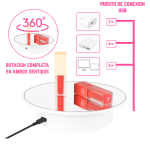 ¿Querés que tus productos se destaquen en cada foto o video? Con esta base giratoria eléctrica espejada de 360° lográs una presentación increíble para tus artículos, ya sea en fotografía, exposiciones, vidrieras o vitrinas.