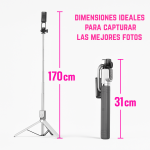 Diseñado para creadores que no se conforman con lo común, este producto combina trípode, palo selfie y mando remoto en un solo dispositivo profesional. Con una altura ideal que te permite capturar desde retratos impactantes hasta paisajes abiertos con la máxima estabilidad.